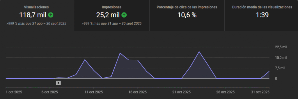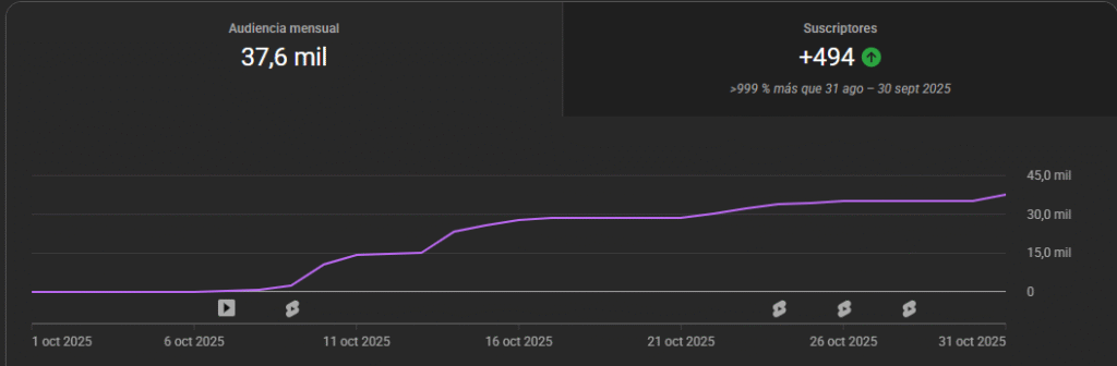 La duración promedio de visualización de 1:39 minutos demostró que no solo atraíamos clics, sino engagement genuino. El video se posicionó como el contenido principal que está aumentando la audiencia del canal, con retorno «Muy alto» según las métricas de YouTube.